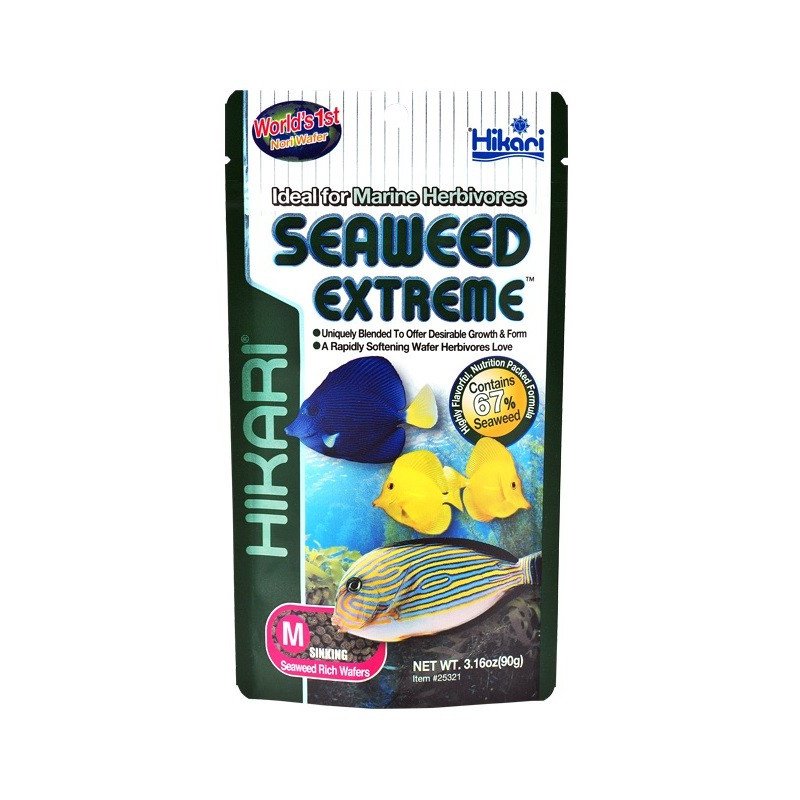 Hikari Marine SeaWeed Extreme est un aliment de qualité qui contient au moins de 67% d'algues nori. Particulièrement adaptée aux poissons herbivores qui en raffolent, cette nourriture convient aussi aux poissons omnivores comme les poissons-clowns, pomacentridés et poissons-papillons.